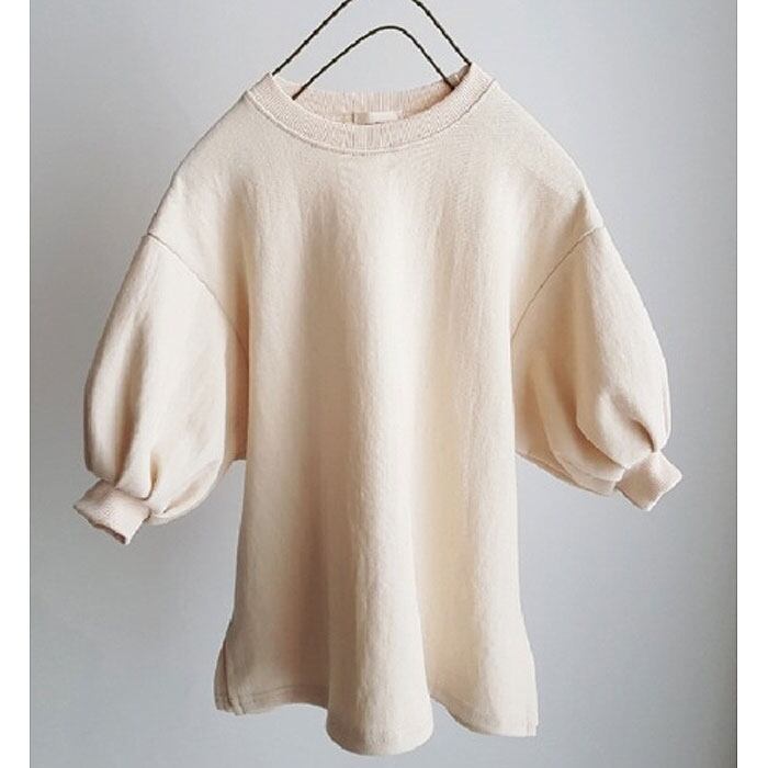 ポワンとした袖が可愛いワンピースです♪スウェット地なので動きやすく活発なお子様にも♡