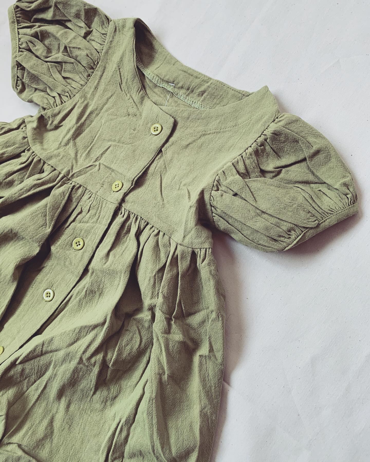 ポワンとした袖や、くすみがかったカラーが可愛いワンピース です♪